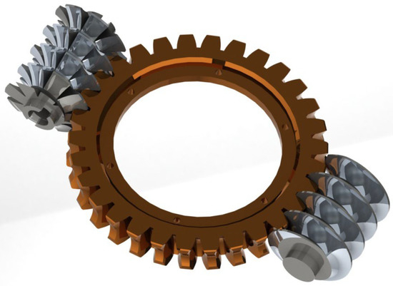 18]. The solid model of the simultaneous coupling wheel, worm and hob is shown in
