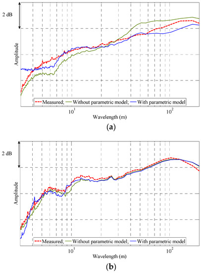 Estimation of vertical track irregularities in the wavelength domain: (a) axle box-mounted accelerometer; (b) bogie-mounted accelerometer.