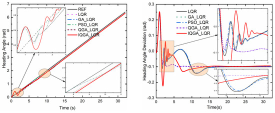 To qualitatively examine the control performance of the IQGA-LQR control strategy, a comparison among the maximum, minimum, and RMSE results for each deviation is derived using the conventional LQR, GA-LQR, PSO-LQR, QGA-LQR, and IQGA-LQR methods given in Table 2.