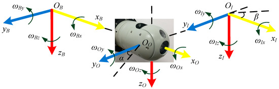 ωI = (ωIx, ωIy, ωIz)T, ωO = (ωOx, ωOy, ωOz)T, ωB = (ωBx, ωBy, ωBz)T