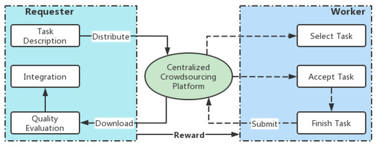 Traditional crowdsourcing systems consist of three roles: requester, worker and a centralized crowdsourcing platform. As shown in Figure 1, the requester and the worker interact through a crowdsourcing platform. The requester uses the crowdsourcing platform to publish task requirements. The worker receives rewards for completing the tasks on the crowdsourcing platform.