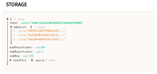 The following is a test to verify some basic functions of this crowdsourcing design service process control. Figure 12 shows the user registration data recorded on the blockchain and addrList[] stores the address information of the users; currently three users have completed registration.