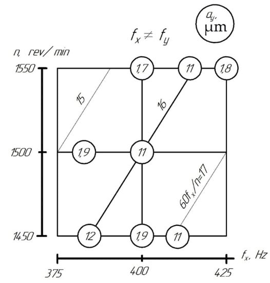 These results are illustrated by a diagram (Figure 8), on which the amplitudes ɑy are shown in circles for various combinations of forced vibrations and rotation frequencies.