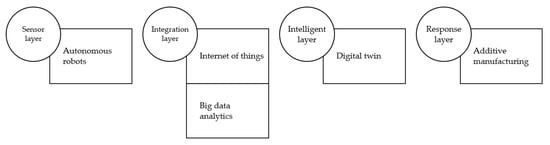 Industry 4.0 refers to a new stage of industrialization in which companies can achieve greater industrial performance by integrating vertical and horizontal manufacturing processes. A key feature of Industry 4.0 is to enable regular machines to become self-aware and self-learning so they can perform better and monitor their maintenance more efficiently. Industry 4.0 mainly focuses on real-time monitoring of data, tracking the status and location of products, and controlling production processes [28]. A number of digital technologies have become enablers of Industry 4.0. The use of autonomous robots allows for more precise execution of autonomous production methods and operations where the work of human workers is limited [29]. In the context of Industry 4.0, simulation reaches the next frontier, known as the digital twin, which is a virtual representation of a physical object using digital data. To create higher quality products, digital simulation tools can enable faster, more flexible and efficient processes by integrating with production systems. Using sensory data in digital simulation can improve the efficiency of production planning and execution by increasing the credibility of production system [30]. IoT includes the dynamic management of complex systems through the real-time interaction of people, machines, objects, and information and communication technology systems. The growth of cyber-physical systems within Industry 4.0 means that a cybersecurity market is emerging [31]. A key component of Industry 4.0 is additive manufacturing, as it reduces the complexity of manufacturing and saves time and money. This allows rapid prototyping and highly decentralized production processes [32]. In a digitalized and easily comprehensible manner, Augmented Reality (AR) provides remote maintenance support through numerous applications for technical knowledge dissemination [33]. An important aspect of Industry 4.0 is the application of big data, which can examine enormous quantities of information to discover hidden patterns and correlations [34].