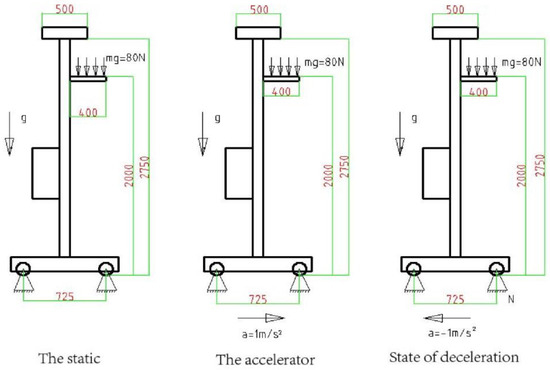 The load analysis diagram of column mechanism under static state, acceleration state and deceleration state.