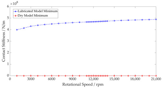 Rolling Element Contact Stiffness—Dry vs. Lubricated Minimum Values.