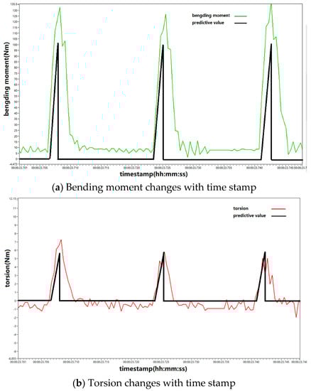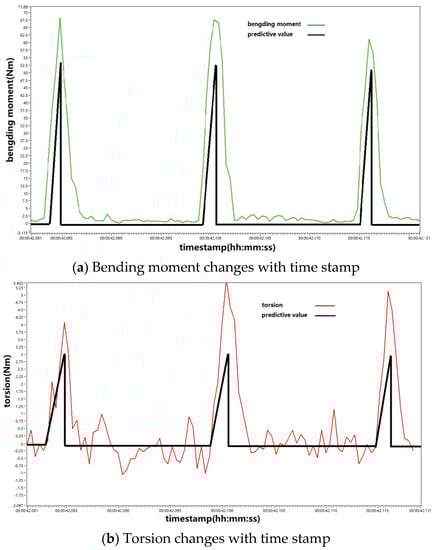 Figure 14 shows a comparison between the experimental and predicted values of bending moment, torsion and tension/pressure during the cutting of alloyed steel 34CrNi3Mo over time.