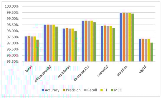 The models were evaluated via different metrics (see Equations (2)–(7)), including accuracy, precision, recall, F1 score, receiver operating characteristic curve (ROC), area under the ROC curve (AUC), Matthew’s correlation coefficient (MCC), etc.