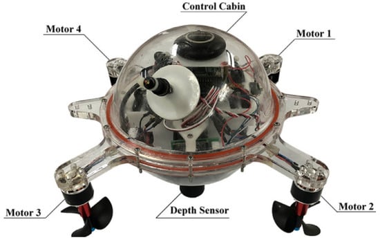 The AUV dataset used in this paper, which includes possible fault types, was derived from the Zhejiang University laboratory and can be accessed at https://data.mendeley.com/datasets/7rp2pmr6mx (accessed on 28 June 2021) [30]. The AUV dataset comprises a total of 1225 samples, consisting of normal working conditions and four fault conditions. The experimental prototype utilized is a quadrotor AUV named “Haizhe”, as depicted in Figure 7.