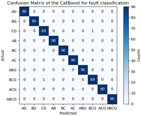 Cat-Boost-based confusion matrix for prediction of classification faults transmission networks.