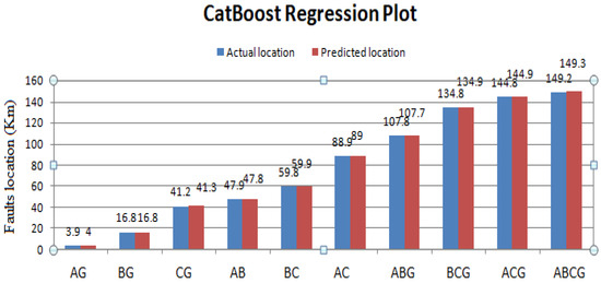 Actual vs. predicted fault locations using Categorical Boosting (Cat-Boost).
