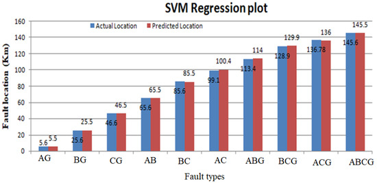 Actual vs. predicted fault locations using Support Vector Machine (SVM).
