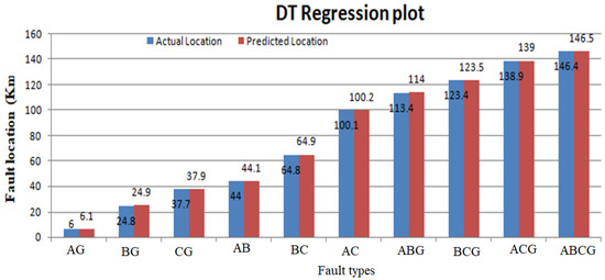 Actual vs. predicted fault locations using Decision Trees (DT).