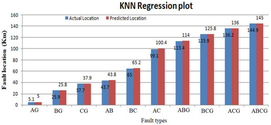 Actual vs. predicted fault locations using K-Nearest Neighbors (KNN).