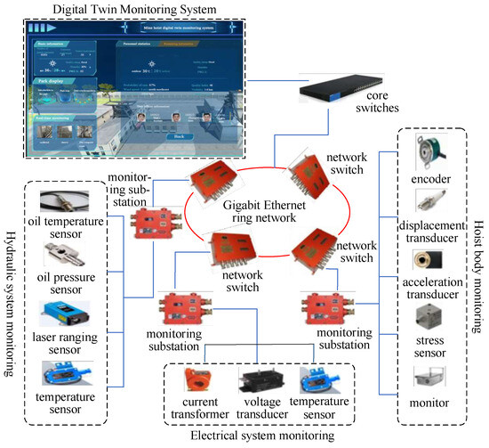 Digital twin, a novel technology capable of capturing the entire life cycle process of the corresponding physical equipment [7,8], has been recognized as a disruptive technology and one of the top ten strategic science and technology trends by Goldner [9,10]. Currently, digital twin technology has undergone broad research and application in sectors such as healthcare [11,12], electric power [13,14], and smart cities [15]. In contrast, the implementation of digital twins in the mining industry has been relatively recent but holds significant potential with a wide range of application scenarios. In previous studies, Kalinowski, P. et al. [16] suggested employing a combination of digital 3D structure models, BIM, and digital twins for diagnosing and monitoring the infrastructure of shaft hoisting systems. Jacobs, D.R. et al. [17] utilized digital twins to simulate and plan comprehensive ventilation networks in deep mines, enabling the identification and diagnosis of high-risk areas prone to high temperatures, dust absorption, and gas accumulation. Additionally, digital twins have been applied to monitor the temperature of electric motors. Li Heng et al. [18] proposed a thermal sensing digital twin model based on BP neural networks to precisely estimate motor torque and speed. Venkatesan, S. et al. [19] developed intelligent digital twins in MATLAB/Simulink for health condition monitoring, including temperature, and established a remote monitoring center. Brandtstaedter, H. et al. [20] presented the application of digital twins in large electric drive trains. Their model-based simulation approach enables monitoring and prediction of the system behavior, including the temperature of the synchronous motor during power-on scenarios.