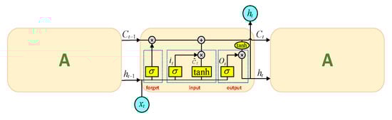The core idea behind LSTM is the introduction of the cell state concept and the ability to make decisions regarding the retention or forgetting of information using the forgetting gate within its memory block. Similar to other recurrent neural networks, LSTM follows a chain-like structure for reusing information, as shown in Figure 7.