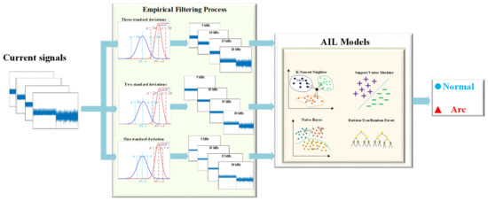 The diagnosis scheme of DC arc fault using AIL models combined with empirical filtering.