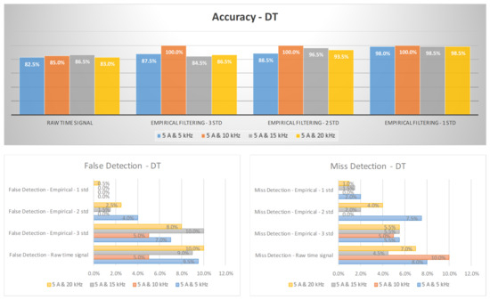 The diagnosis rates of three-phase inverter at 5 A using empirical filtering and a decision tree (DT).