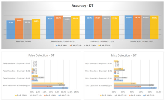 The diagnosis rates of three-phase inverter at 8 A using empirical filtering and a decision tree (DT).
