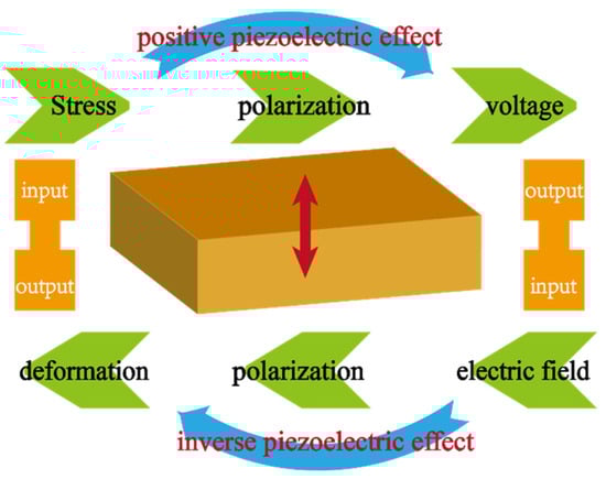The piezoelectric effect refers to the deformation of piezoelectric materials under the action of external force, through coupling material dielectric properties and elasticity, in the material surface to form opposite charges to produce a polarization phenomenon [97,98].