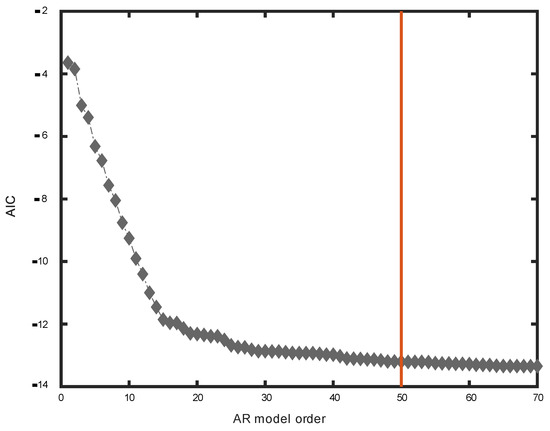 The designed AR model is such that it minimizes the AIC values, that is, 50, as shown in the results plotted in Figure 5. It means 50 is the best fit AR model, according to the Akaike information criterion (AIC), which explains the greatest amount of variation using the fewest features. This value is shown by the red line in the Figure 5. Consequently, the total number of principal components is also fixed at 50.
