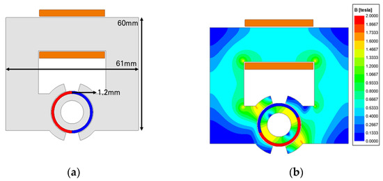 The shapes of the symmetric air-gap model and the model with applied asymmetric air-gap are as follows: (a) symmetric air-gap model; and (b) asymmetric air-gap model.