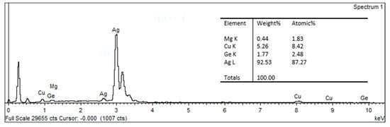 Sterling silver (Ag) energy dispersive X-ray (EDX) element analysis.