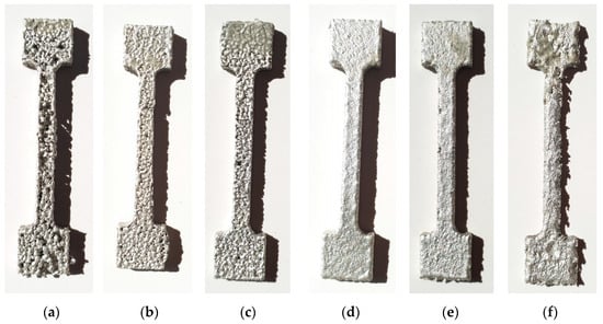 Ag-D in situ composite samples showing effects of D addition and turbine and scan speed parameter adjustments: (a) Ag-D0.1, turbine 0.60 mbar and 400 mm/s scan speed, (b) Ag-D0.1 turbine 0.80 mbar and 400 mm/s scan speed, (c) Ag-D0.1 turbine 1.0 mbar and 400 mm/s scan speed, (d) D0.1 turbine 1.0 mbar and 200 mm/s scan speed, (e) D0.2 turbine 1.0 mbar and 200 mm/s scan speed and (f) D0.3 turbine 1.0 mbar and 200 mm/s scan speed.