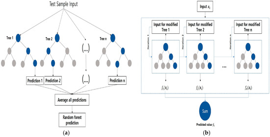 (a) Schematic diagram of the random forest [32]. (b) Schematic diagram of the XGBoost [33].