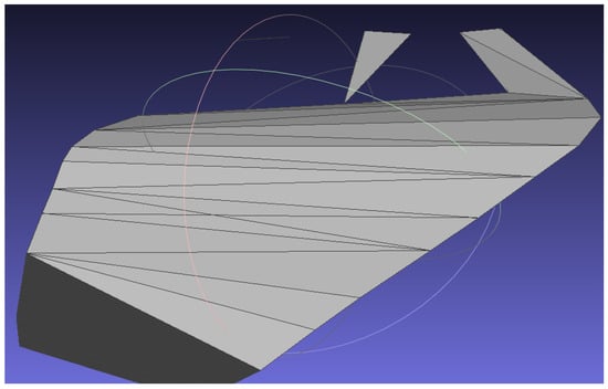 The first challenge is to decompose the triangles that make up the CAD mesh into discrete points in the 3D space representative of the inspection points to be visited and the non-inspection points or prohibited areas. These points, being of a higher resolution than the triangles defining the surface, will ultimately form the nodes of the graph in the solution outlined within this paper. This decomposition process is well documented within the literature [], with several approaches available. For the purpose of this work, and to avoid confusion on the specific implementations, the decomposition was performed using third party software. The CAD model was imported into MeshLab (version 2022.02), and the Poisson disk sampling algorithm was employed for random point sampling. This algorithm ensures a minimum distance between points, resulting in a more uniform distribution of the point cloud sample. This provided the set of approximately evenly distributed points along the surface of the component that were used as the input to the graph structure.