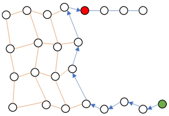 - Sun, Q.; Wan, W.; Chen, G.; Feng, X. Path Planning Algorithm under Specific Constraints in Weighted Directed Graph. In Proceedings of the 2016 International Conference on Audio, Language and Image Processing (ICALIP), Shanghai, China, 11–12 July 2016; IEEE: Piscataway, NJ, USA, 2016; pp. 635–640. [Google Scholar]