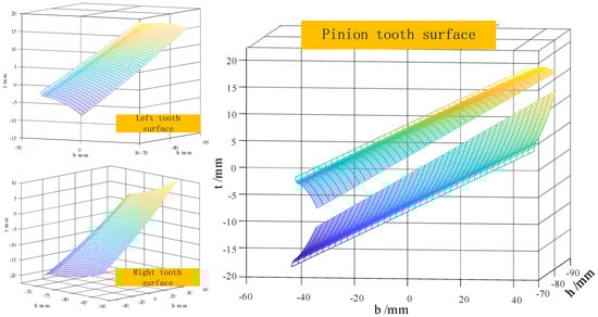 The double-crowned modified pinion surface can be represented by Equation (22).