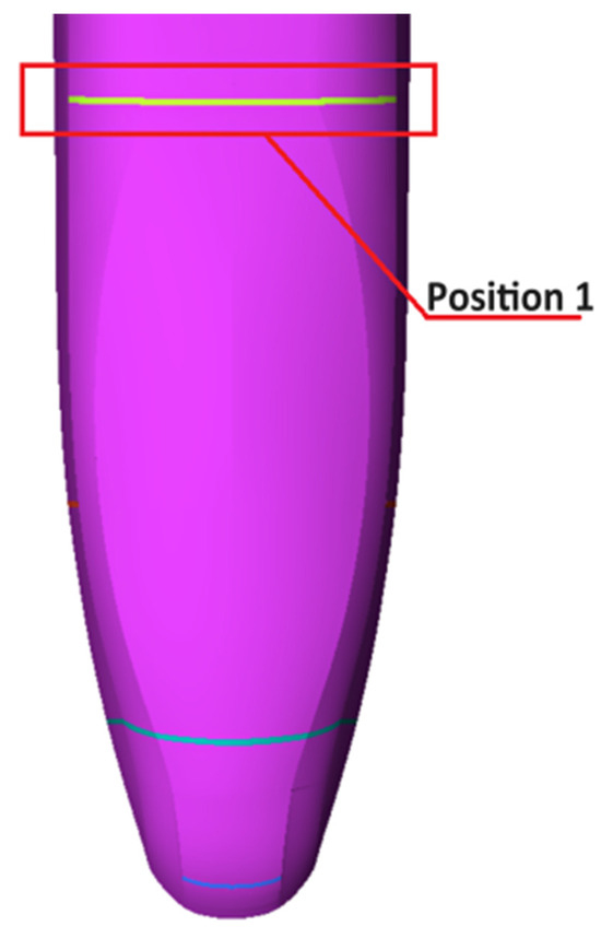 As seen in Figure 8, there is flow separation at the area close to the top of the rear car’s nose, where the plasma excitation region can be changed to reduce the local boundary layer separation. Figure 8 shows that flow separation occurs in the rear car of the rolling stock near the window position. This, combined with the velocity contour diagram of the longitudinal section, creates a significant area of low pressure behind the rear, which raises the pressure differential between the front and rear of the rolling stock and then adds to the differential pressure drag during the rolling stock travel process.