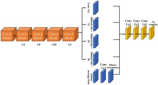 As shown in Figure 11b, the classical ASPP model was operated only once at the end of the encoder of the decoder–encoder model. We devised a method for transmitting semantic information more effectively using the proposed structure. Figure 12 shows the proposed ASPP technique.