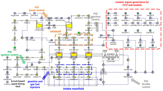 Previous publications contain more detailed settings of the simulation [23,24], and for brevity, only the specifics of CCV-related sub-models and newly added elements will be described.