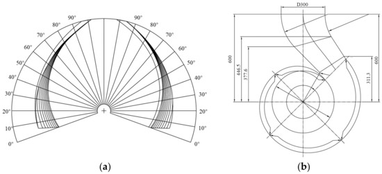 Impeller and volute hydraulic model diagram: (a) impeller; (b) volute.