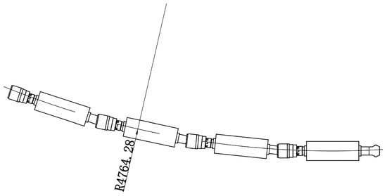 The first concern in designing the DFDR is to ensure its ability to be sent downhole through curved sections of the URHW. In other words, the maximum radius of the DFDR-inserted flexible string should fall within the radius range of the curved section of the URHW. Because a DFDR is longer than a normal flexible drill rod, assuming that a whole flexible string is composed of DFDRs, the maximum radius of the DFDR-added string is obtained. As shown in Figure 1, this maximum radius is 4.76 m, which satisfies the requirement of the URHW curvature radius.