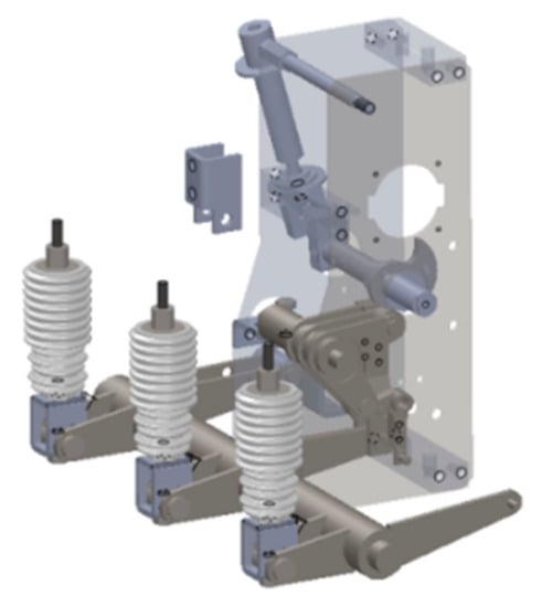 - Yu, M.J.; Wang, L.C.; Huang, S.C. Optimal dimensional synthesis of the trigger mechanism of a high-voltage circuit breaker. J. Chin. Inst. Eng. 2013, 36, 146–156. [Google Scholar] [CrossRef]