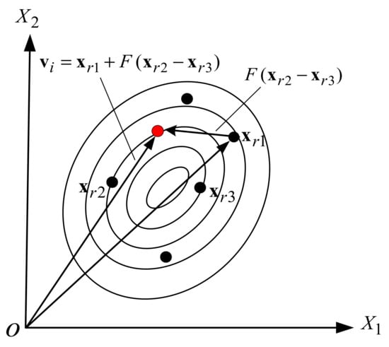 After initialization, a donor/mutant vector corresponding to each target vector in the current iteration (t) was obtained according to outcome of the mutation operation. Figure 26 illustrates a simple DE mutation scheme () in the 2D parametric space. The five most frequently used mutation strategies are listed below: