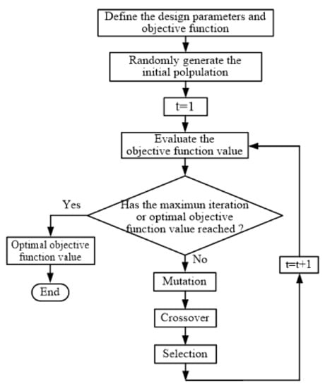 Figure 27 illustrates the flow of the DE optimization algorithm. The optimal solution of a design problem is obtained through an iterative process to determine the fitness value of the candidate solutions; the favorable solutions are retained and unfavorable solutions are discarded until the optimal solution is determined. The advantages of the DE algorithm are its simple structure, easy implementation, and ability to achieve rapid convergence.