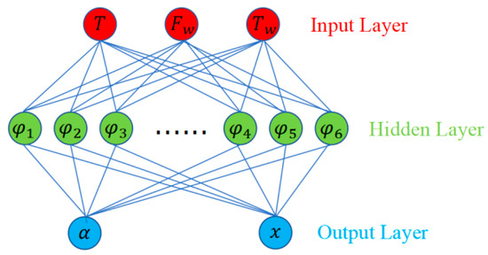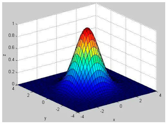The RBF neural network is a three-layer neural network, which includes the input layer, the hidden layer and the output layer [19], as shown in the Figure 12. The transformation from input space to hidden space is nonlinear, while the transformation from hidden space to output space is linear. The difference between an RBF neural network and a traditional BP neural network is that the former uses the radial basis function as the activation function during forward propagation. Radial basis function is a scalar function that is symmetrical along the radial direction. It is usually a Euclidean distance monotone function from a point in space to a center, which can be recorded as . The most commonly used radial basis function is a Gaussian kernel function (Figure 13).