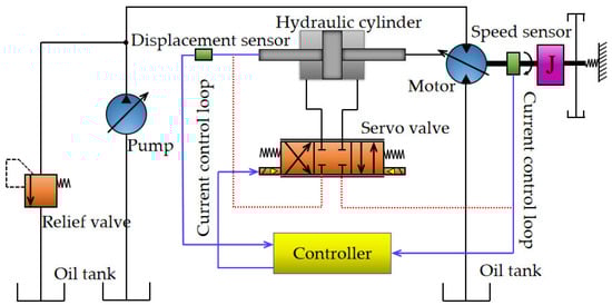 The hydraulic servo system has developed into one of the leading research goals in hydraulic control as a high-precision feedback control technology [1]. Pump–motor servo systems (PMSSs) as an integral component of electro-hydraulic servo systems (EHSSs), are extensively applied in the manufacturing industry due to their excellent efficiency, sizable load capacity, and high power-to-weight ratio [2]. Controlling the motor’s speed is one of the fundamental difficulties in hydraulic servo systems. The most common controllers used in hydraulic servo systems are still PID ones [3]. They have a straightforward construction, dependable operation, and strong performance. The sensitivity of the conventional PID control to the parameter changes is high [4]. The controlled impact will be greatly diminished whenever the control environment changes, making it difficult to effectively achieve a consistent speed control of the motor.