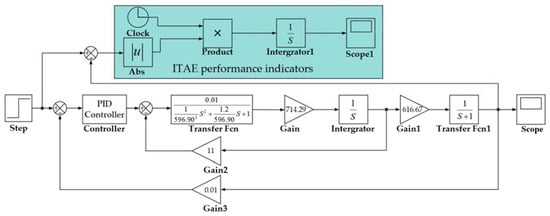 In the design process of the PID parameters, the three independent variables Kp, Ki, and Kd have a very important effect on the dynamic property of the PMSS, such as stability and timeliness. The research shows that the system can achieve a quick reaction time and excellent controllability by selecting the appropriate three parameters [40]. In this study, the GWOPSO algorithm is proposed to optimize the PID controller, select the appropriate objective function, and determine the three-parameter combinations of Kp, Ki, and Kd. The goal function’s value is used to gauge how quickly the control system responds. In this paper, the ITAE performance index is introduced into the performance evaluation of the PID scheme as the objective function of the GWOPSO algorithm [41]. The ITAE is the absolute error multiplied by time, which penalizes the error that exists after a long time and is considered to be an important indicator for measuring the system’s performance. The ITAE can be written as:
