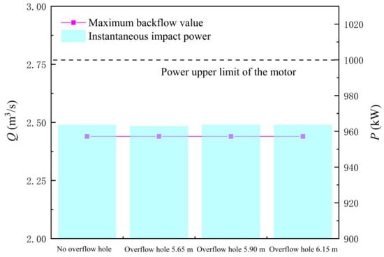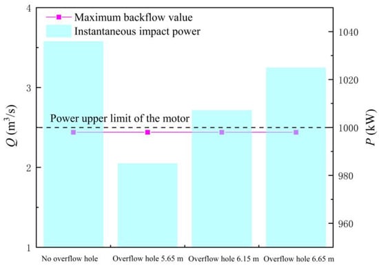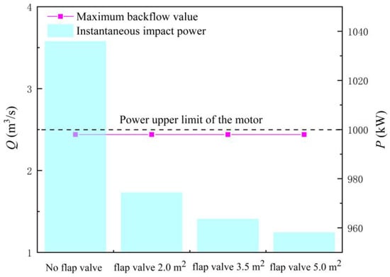 Maximum backflow flow and instantaneous impact power of the large axial flow pump system with different areas of flap valve.