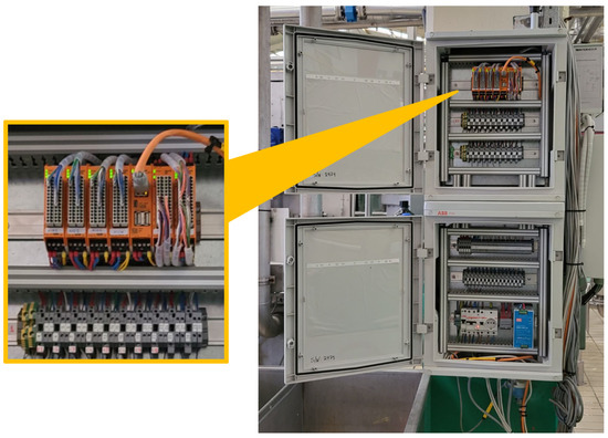 The IIoT controllers were deployed at the production line facility, close to where the pasteurizer machine is situated. The IIoT controllers are composed from RevolutionPi gateway stack, which is essentially an industrial version of Raspberry Pi [37]. Figure 3 displays the installed electrical panel that includes the IIoT Controller and the connections for all signals, while Figure 4 demonstrates the graphical representation of the tunnel pasteurizer.