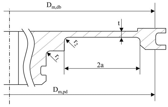 As mentioned in Section 2.1, the piston undergoes cyclic stress due to repeated braking. Therefore, an analysis of the stress concentration on the two fillets depending on their radii is performed. The fatigue limit of the system is thus verified by means of Haigh’s diagram [24]. The stress gradient beneath the surface is also analysed to estimate the coefficient of stress gradient .