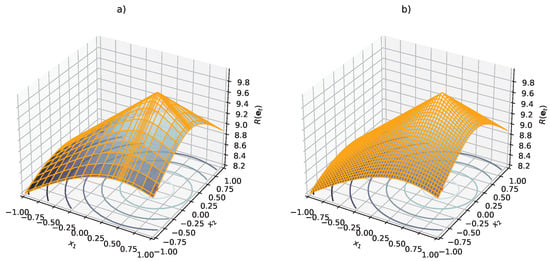 A comparative grid example of the classical box and variable box methods is shown in Figure 2, considering two state variables with and . Figure 2a uses a constant resolution , whereas the variable box method considers and . Note that both methods have the same box resolution and accuracy around the goal box. This way, finer action is taken with a greater reward when it is near the goal.