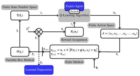 Schematic diagram of the proposed variable box method with Q-learning. Two feedback loops reinforce the intertwined closed-loop dynamic interplay of the expert agent to guarantee , whereas the cumulative reward is maximized.