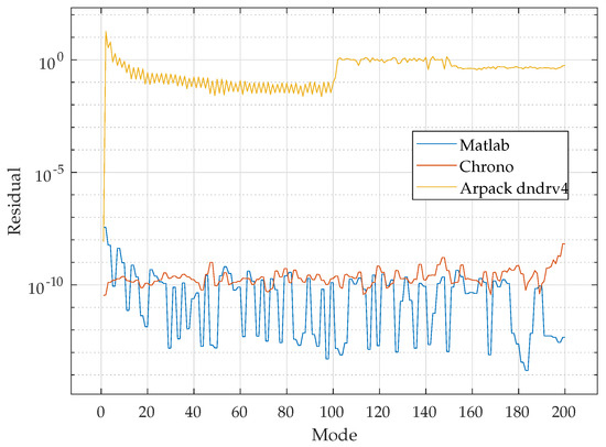 dndrv4 routine was not able to converge to more accurate results. The Intel MKL Pardiso solver was used for both the Krylov–Schur and Arpack solvers, thus restricting the potential cause of the reduced accuracy to the eigensolver itself.
