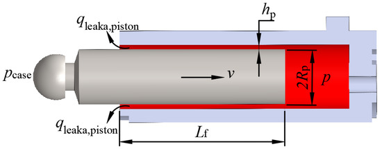 where Rp is the piston radius, hp is the average film thickness of the piston/cylinder interface, μ is the dynamic viscosity of oil, Lf is the coupling length of the piston/cylinder interface, pcase is the housing pressure of the piston pump.